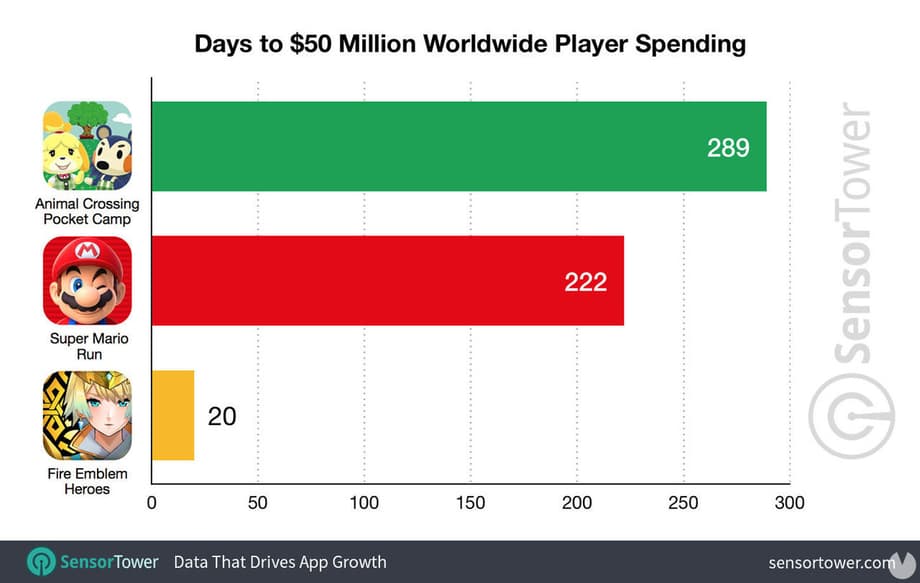 The title has taken two months longer than Super Mario Run to reach this milestone, but both are far from the huge success of Fire Emblem Heroes, which got that volume of revenue in just 20 days and has already accumulated more than 400 million dollars generated since its launch.