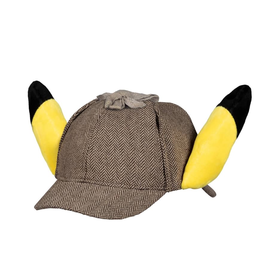 Pokémon cards, a deerstalker cap featuring Pikachu ears, and a