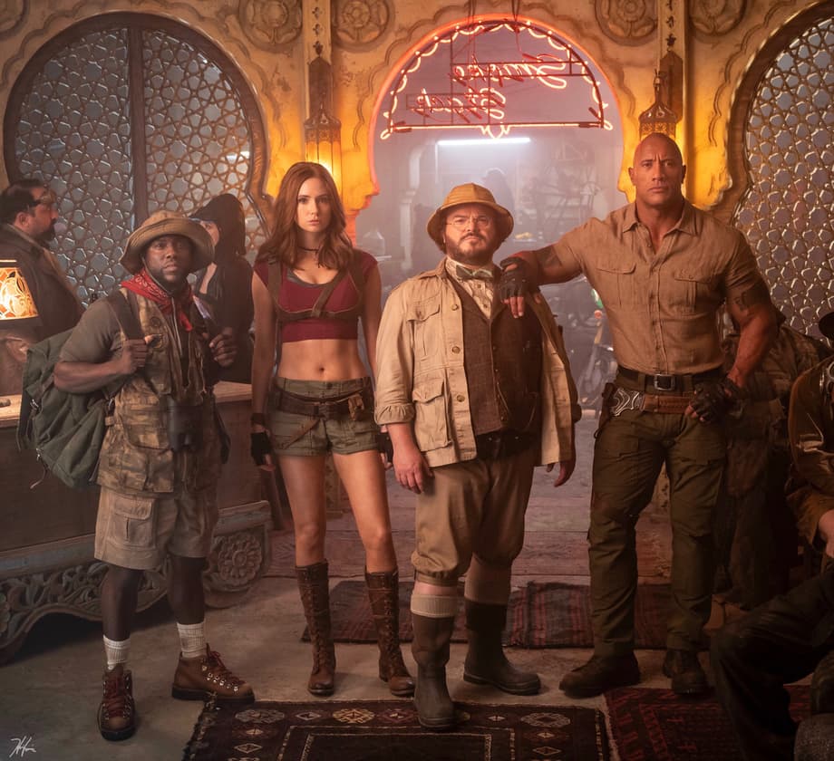 Dwayne "The Rock" Johnson, Kevin Hart, Karen Gillan, Jack Black, and Nick Jonas all reprise their roles in