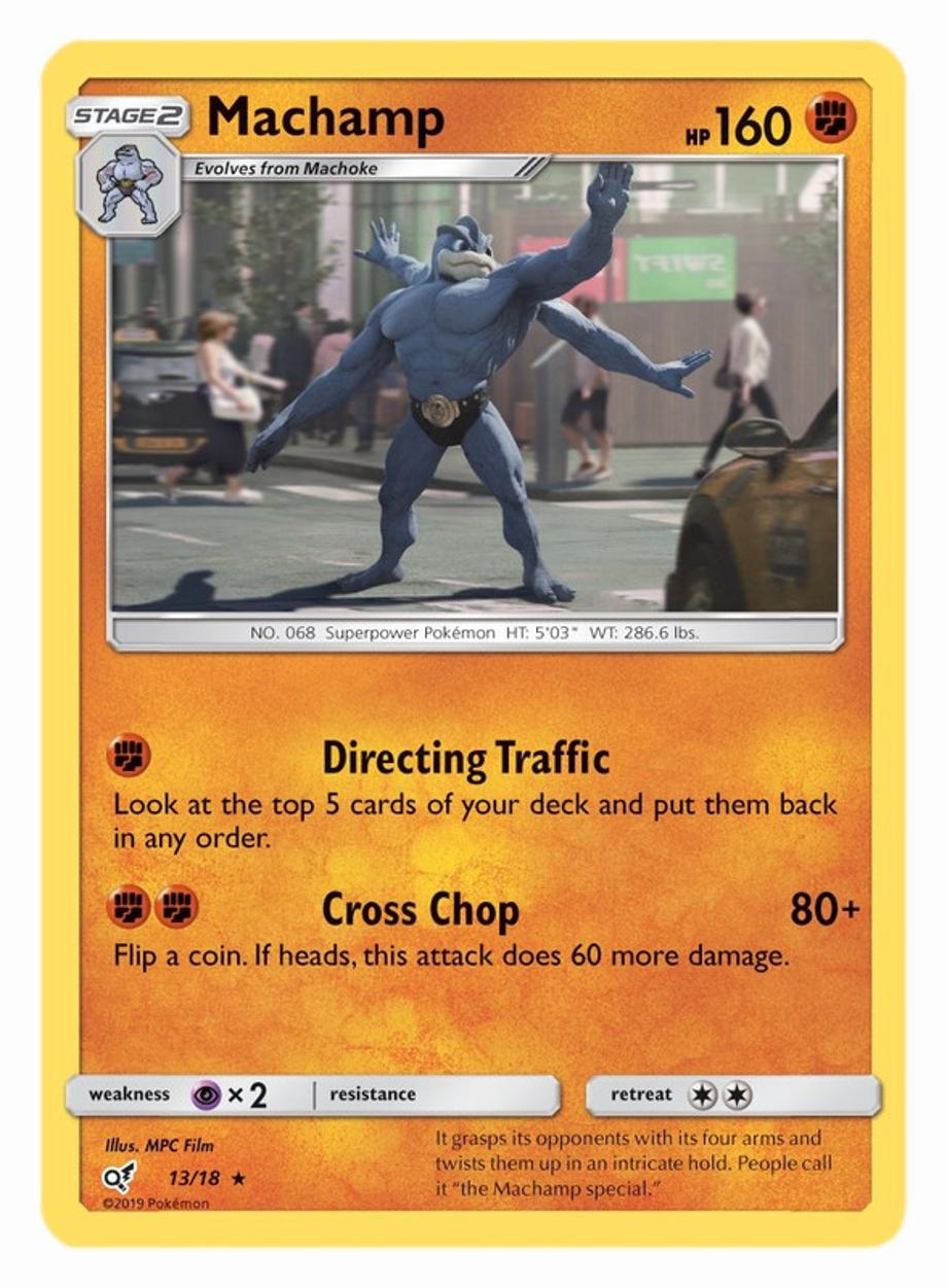 Detective Pikachu movie give us a better look at Mewtwo, as well as Machamp, Ludicolo, Bulbasaur, and Detective Pikachu himself. These trading cards will be released on the