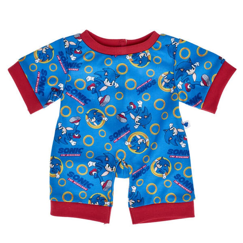 Sonic the Hedgehog movie T-shirt and onesie as well as a golden ring that other plush toys can hold and red sneakers loosely based on those that Sonic himself wears.