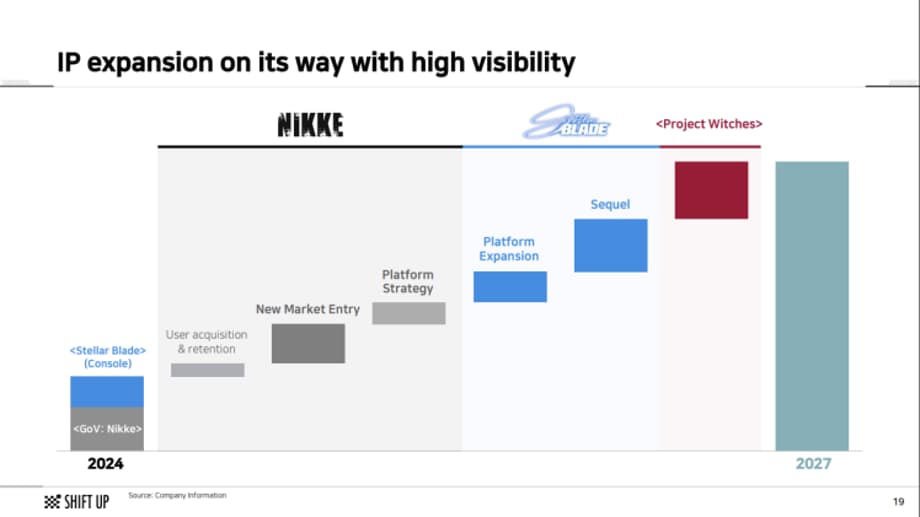 The same slide lists “Platform Expansion” for Stellar Blade, which is assumed to reference the upcoming PC release, scheduled for next month. While not formally titled in the document, the inclusion of “Sequel” effectively confirms Shift Up is already working on the sequel Stellar Blade 2, hot on the heels of the original game's success.