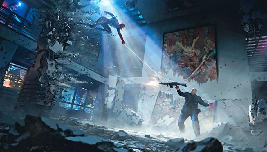 This amazing piece of concept art shows Spidey squaring off with someone who looks an awful lot like a slimmed down version of The Kingpin but I'm guessing it's probably just a random baddie.