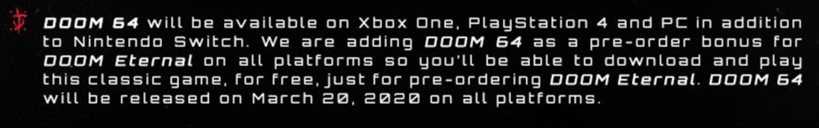 DOOM 64 is now a pre-order bonus for