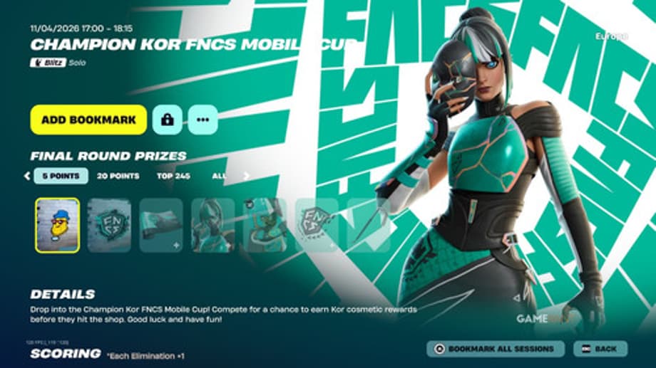 Champion Kor stands out as one of several themed skins receiving its own dedicated FNCS Cup treatment this year. The skin itself features a sleek, competitive-ready design that has caught the eye of players scanning the battle pass and shop rotations. Epic Games structured the event to give participants two distinct paths to the rewards, both kicking off on Saturday, April 11, 2026. The first is the Champion Kor FNCS Mobile Cup, running in Blitz Solo format exclusively on mobile devices. The second is the Champion Kor FNCS Cup proper, a standard Battle Royale Duos tournament available across all platforms.