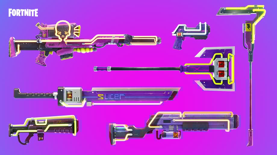 Neon Weapon set added, available in the new ‘Into the Storm’ event Llama.