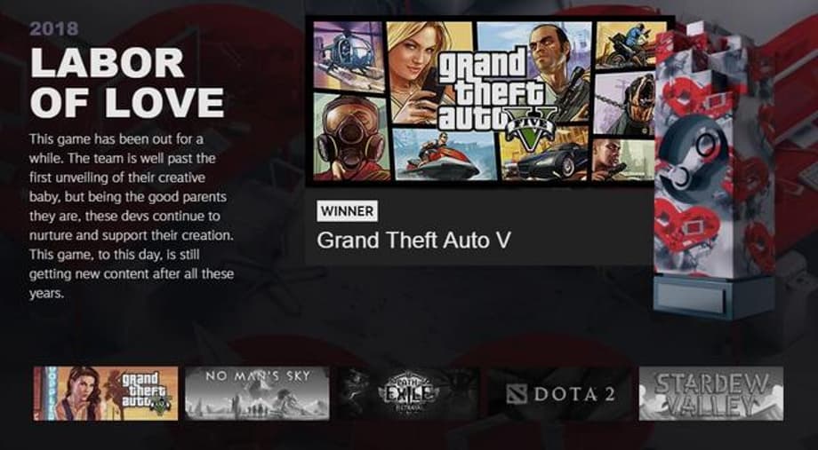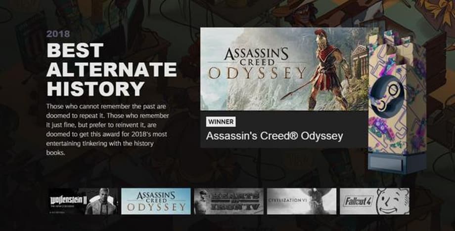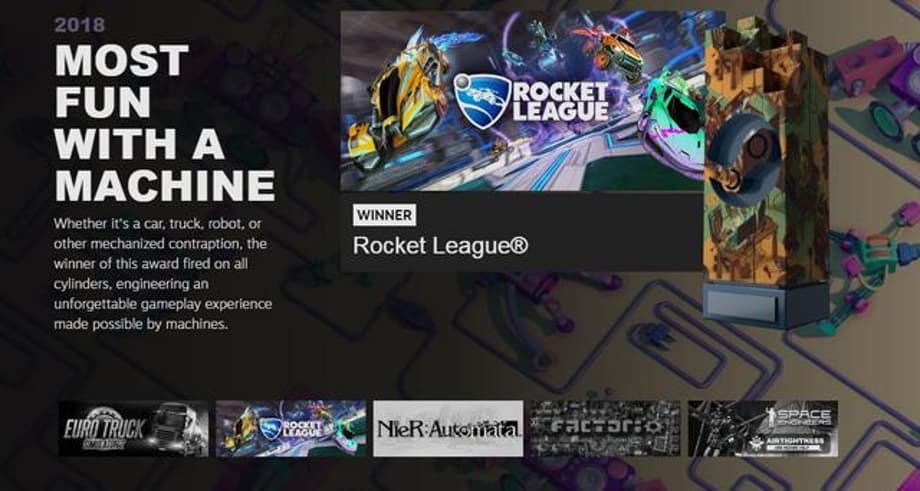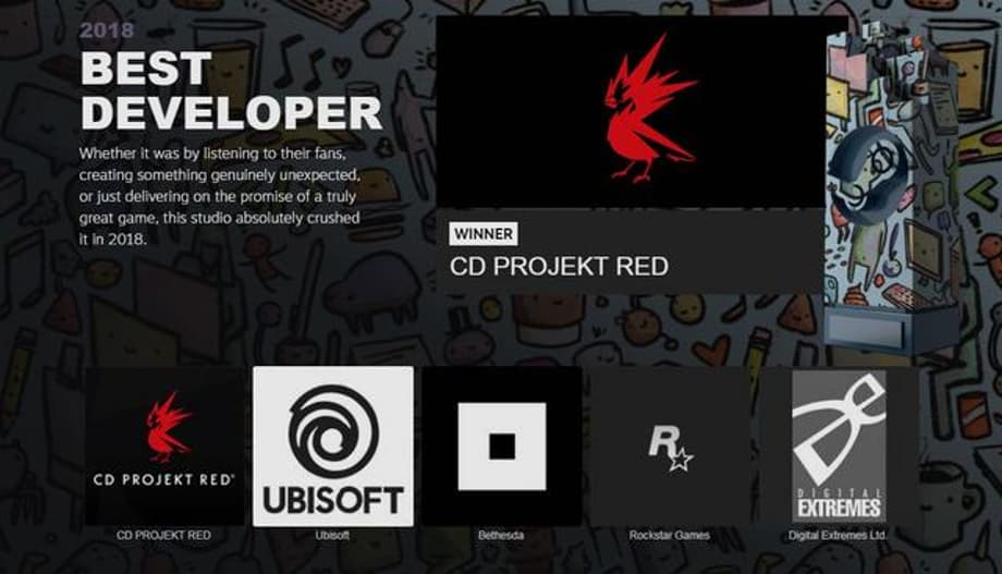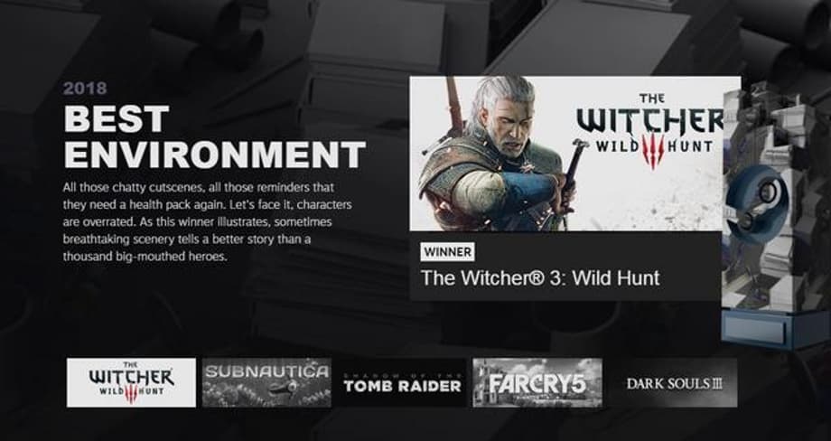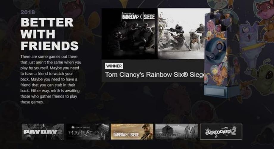 There were only 8 awards given out this year, as opposed to last year's 13; however, it seems Steam opted for more traditional categories, as there was a Game of The Year award, as opposed to last year's The Choices Matter award.
