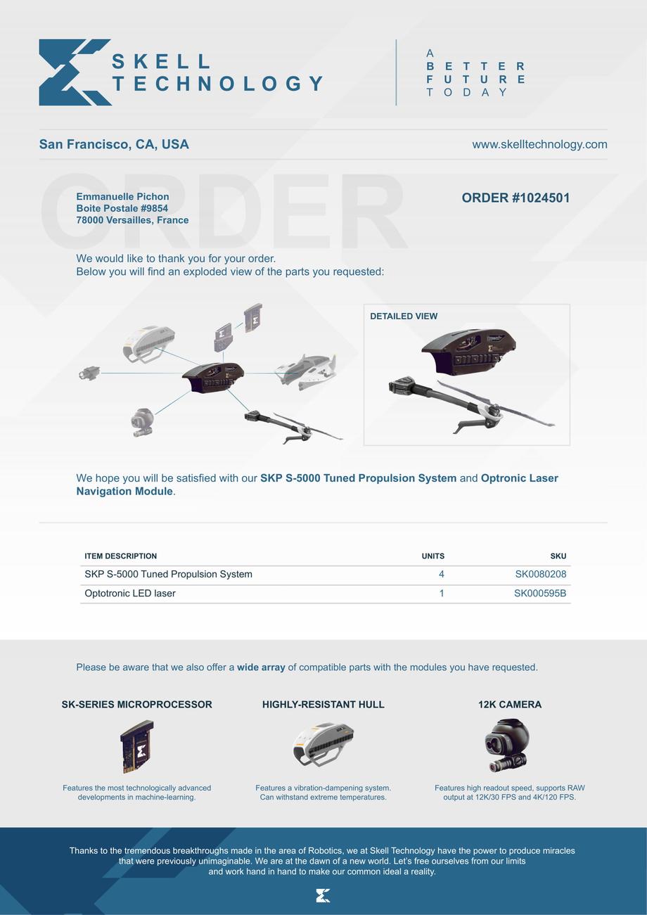 Some players have deiced to investigate why Ubisoft has been teasing this drone company in their video games, and recently discovered Skell Technology’s viral website. After "breaking" their safety net with the combination of login: „asantos”, password: „10068” and „epichon”, password: „15034," you can watch two new promotional materials - the unlisted "Civilian Drone Catalog" YouTube video and the ORDER #1024501 sheet, as it ends the receipt with the statement "