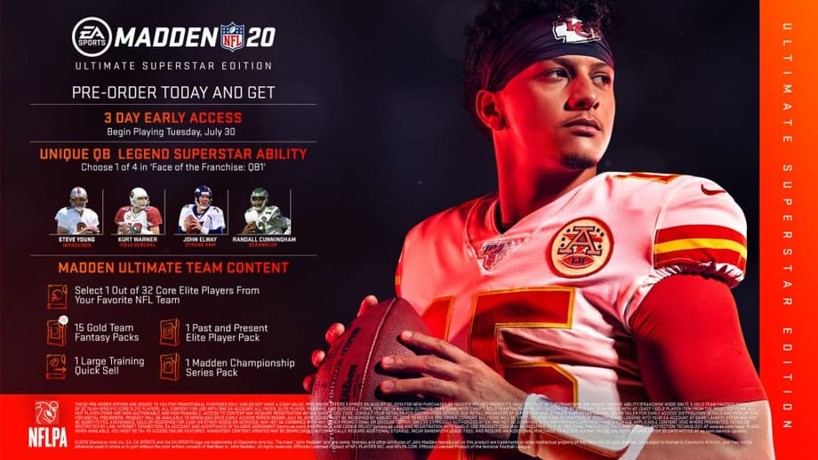 Madden NFL 20 will be available worldwide on August 2, 2019 for Xbox One, PS4 and PC (Origin). Pre-ordering the Superstar Edition or Ultimate Superstar Edition will get you three-days early access to begin playing on July 30. These special editions will also come with a bunch of digital bonuses for Madden Ultimate Team.