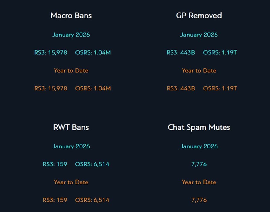 Old School RuneScape players have started this month with some welcome news. Jagex revealed they banned more than 1 million macro accounts in January alone, nearly doubling the 582,000 from December 2025. The stat, shared via in-game updates and quickly highlighted on the official r/2007scape subreddit, marks one of the largest banwaves in the game's history. Fans celebrated the purge as a strong start to the year, with the Reddit post titled "1 Million Macro Bans in January 2026" earning hundreds of upvotes and flaired as an "Achievement."