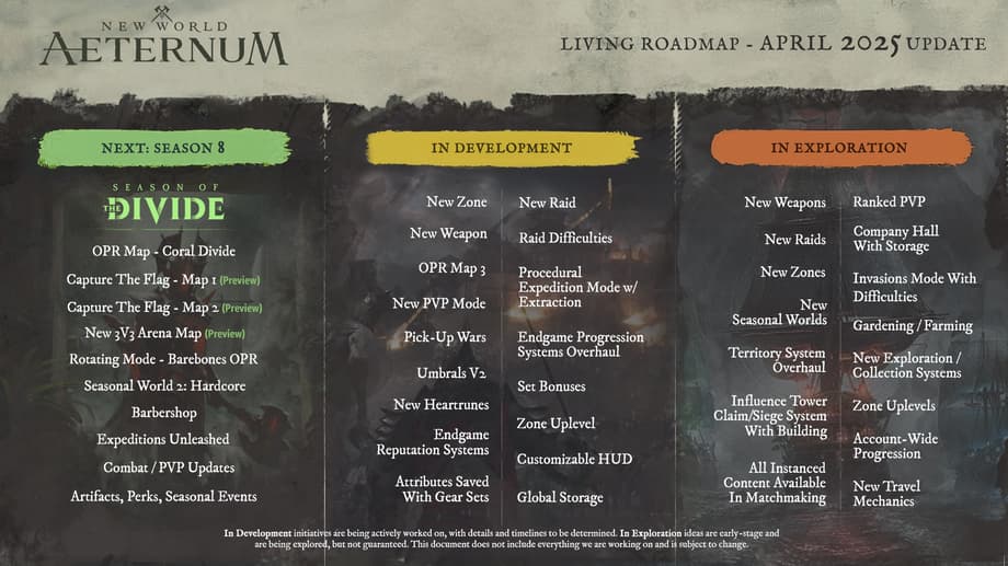 Amazon Games has revealed the full details of Season 8: Season of the Divide for New World: Aeternum, set to launch on May 13th. The update introduces the most competitive and risk-reward-driven seasonal content yet, including Hardcore Seasonal Worlds, new PvP modes, World Bosses, and long-awaited combat and QoL updates. Read for the full details and everything you need to know to be ready for the next season of New World: Aeternum!