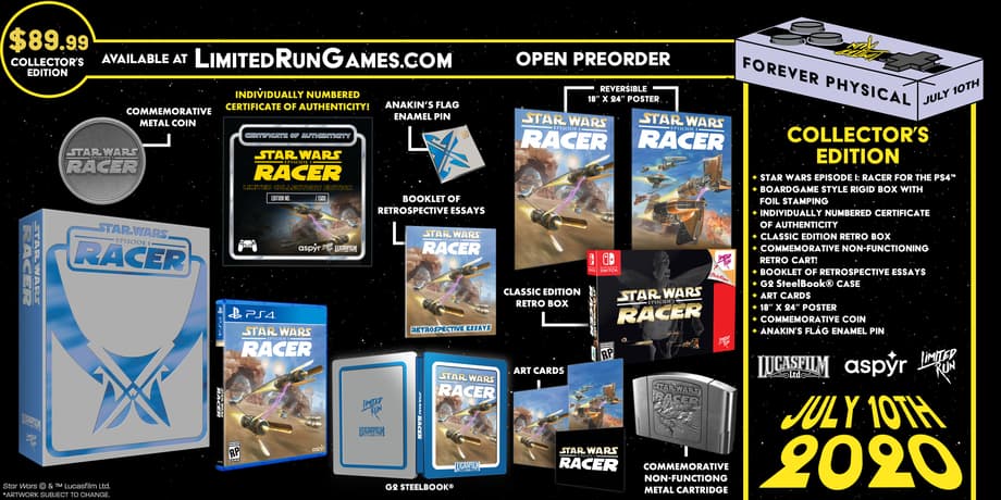 What's more, Limited Run Games has revealed that pre-orders for the physical copies of Star Wars: Episode I Racer will open on Friday the 10th of July at 10:00 AM Eastern Time via Limited Run Games' official website.