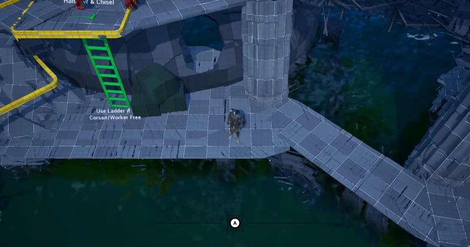 Gameplay screenshots hint at mechanics: top-down traversal with verticality via ladders scaling multi-level structures, patrolling enemies blocking paths, and interactive elements like green-highlighted ladders labeled "Use Ladder." A sense of exploration emerges, with shadowy figures navigating precarious walkways over water and cluttered harbors.