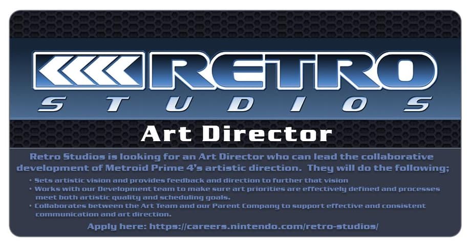 Metroid Prime 4 was nowhere to be seen during this year's E3 — which, to be quite honest, is something that was to be expected — and just today Retro Studios has shared a new post on their Twitter account; letting people know that they are currently looking for an Art Director for