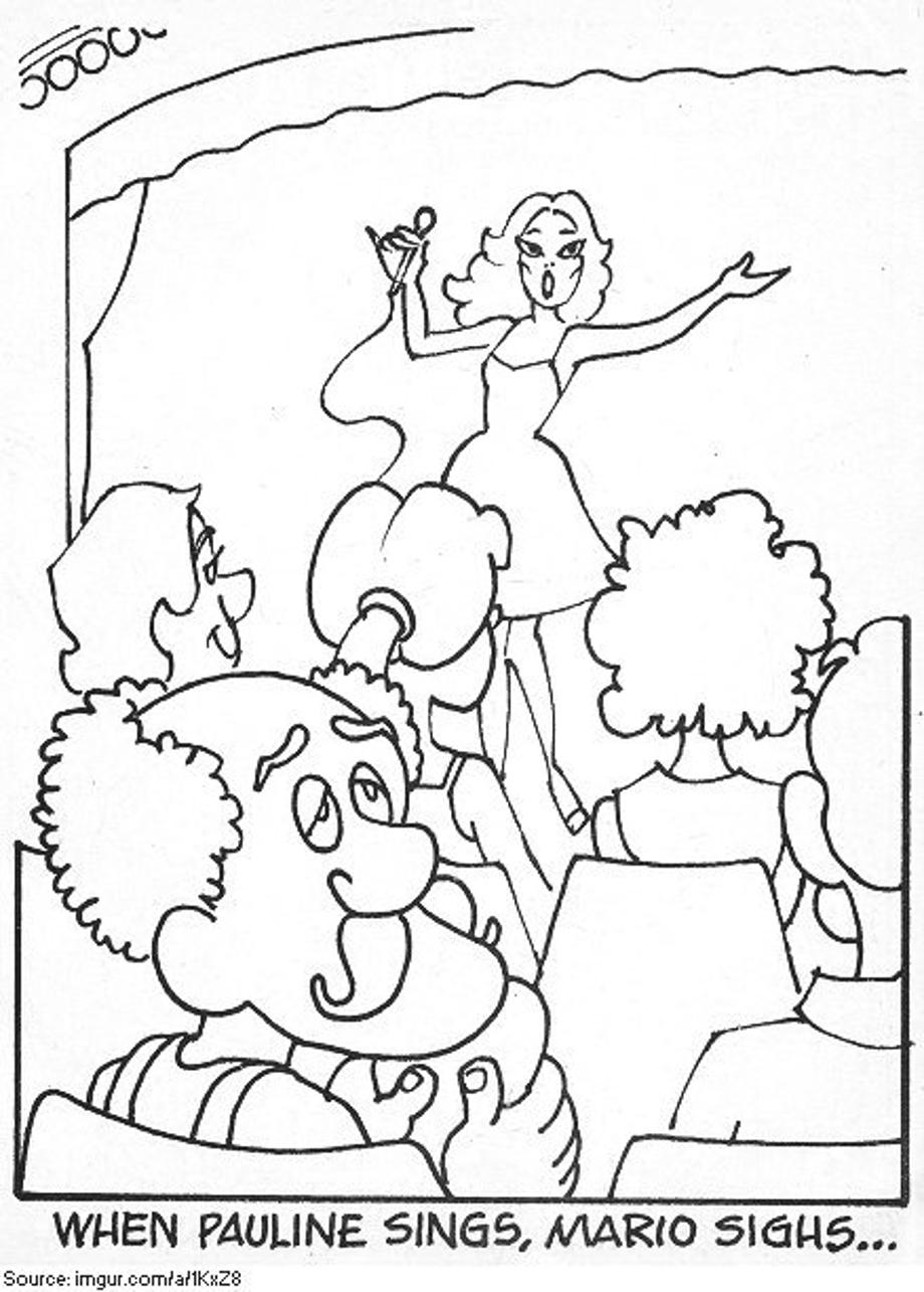 Donkey Kong Coloring and Activity Book released in 1982, a year after the popular Arcade and NES Donkey Kong title became available, Mario was a middle-aged bald man sighing at the song Pauline, the original damsel in distress before Princess Peach even existed, was singing.
