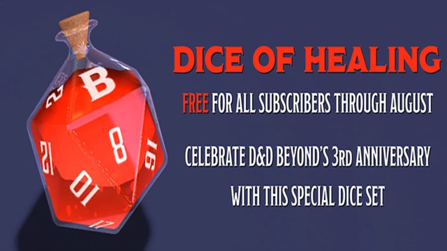 D&D Beyond is a tool and companion piece that offers digital character sheets, monster and spell listings, rulebooks, supplements, and of course, the other fifth edition books. Celebrating its third birthday, this month, the team behind the cite has decided to offer a free dice of healing set for all subscribers!