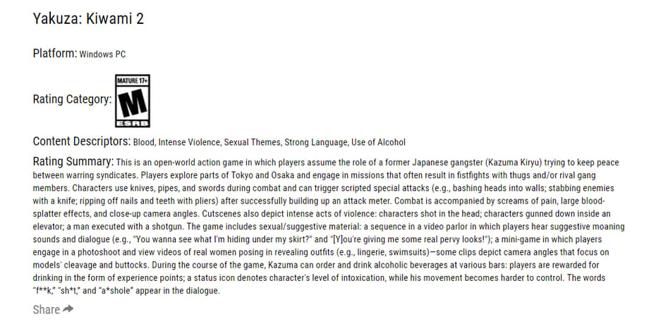 Yakuza series might be released for PC. According to the Entertainment Software Rating Board (also known as the ESRB), that’s exactly what's going to happen, as