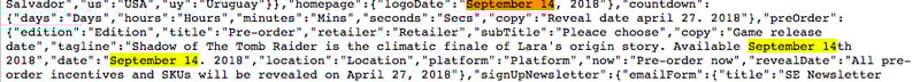 Tomb Raider website (which only happens to say March 15, 2018, 6:00 AM PDT) shows a reveal date, the full release date and the name of Lara's last adventure.