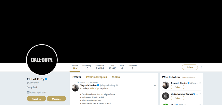 This has all but been officially confirmed as the first-person-shooter series' social media accounts have all gone dark, removing their profile picture, banner, and even stating as such in their bio. Take their Twitter account (@CallofDuty) for example, which you can visit by clicking here.